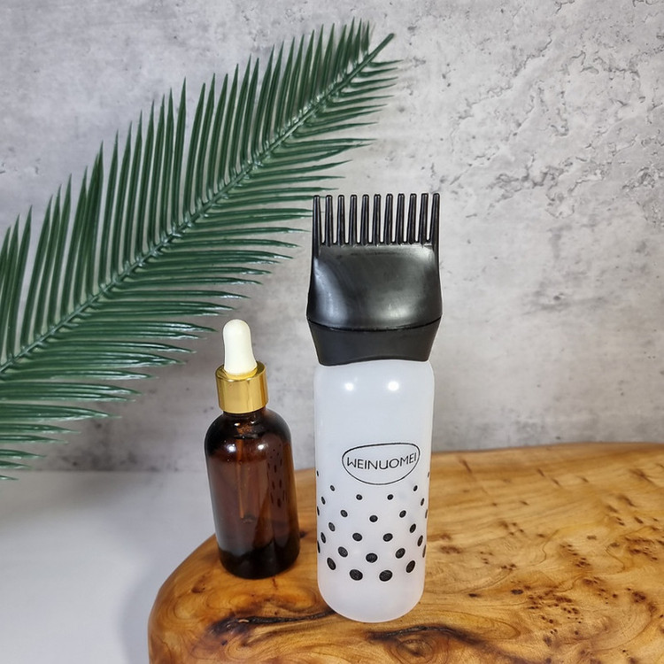 روغن تراپی مو شامل ماساژ و آغشته كردن پوست سر و موها با روغنهاي ضروري است. از آنجا كه روغنهاي ضروري هر كدام خواص منحصربه فردي را دارند، معمولا به صورت تركيبي از آنها استفاده ميشود. اپلیکاتور روغن درمانی مو از جمله بطري سر شانهاي در مخزناش داراي درجهبندي ميباشد، لذا استفادهي آن براي تركيب مقدار روغنها طبق دستورالعملهاي مصرف بسيار آيدهآل است. بطری سرشانه دار و بطری سرشانه اي یک ابزار ضروری برای مراقبت از مو است. مصرف روغنها در بطری سرشانه دار و بطری سرشانه ای با نوک باريك آسان است. بطری سرشانه اي ورود ترکیبات درمانی را به پوست سر تسهیل میکند. اپلیکاتور روغن درمانی مو به شما امکان میدهد که به راحتی و با دقت روغن گیاهی یا مخلوطهای درمانی یا جوشانده های گیاهی مثل رزماری یا آب برنج را مستقیماً روی پوست سر بمالید و از هدر رفتن آن برخلاف قطره چكان جلوگيري كنيد.